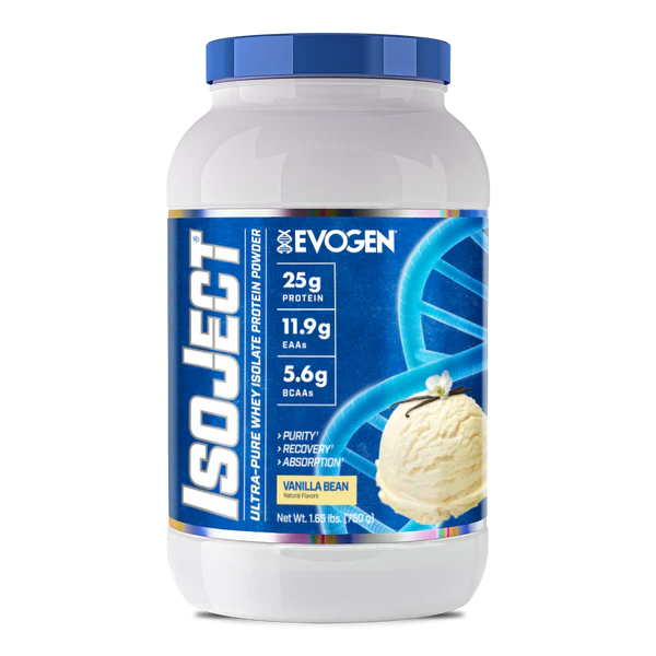 • USO SUGERIDO: IsoJect de Evogen se recomienda como parte de una dieta equilibrada que incluya alimentos integrales y otras fuentes de proteínas. Los requerimientos nutricionales individuales pueden variar según el sexo, el peso corporal, el nivel de actividad y la intensidad del ejercicio/entrenamiento.
